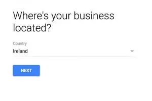 Next, you are presented with a Business location option. Select your country and click ‘Next’ to proceed.