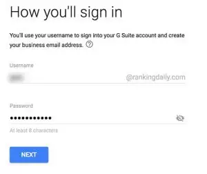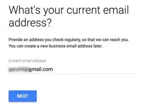 The next step is to enter your email address that you will use to sign into the Admin dashboard. This is where you actually set up your new corporate email addresses.