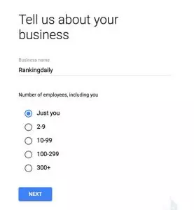 Next thing to do is to enter your Company name and select the number of employees in your business.