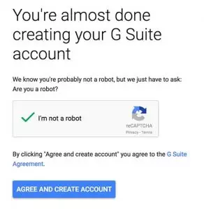Click the checkbox on the reCAPTCHA to agree that you are not a robot and hit the ‘Agree and create account’ button to continue. Once this completes you can click on the ‘Go to setup’ button to continue.